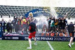 Matevz Vidovsek and players of Olimpija celebrate Slovenian National Title after the Prva liga Telemach 2024/2025 football match between Bravo and Olimpija in Ljubljana, Slovenia on May 24, 2025