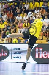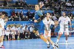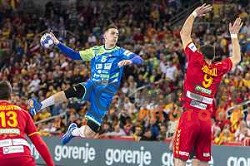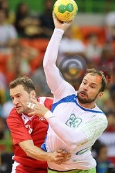Uros Zorman of Slovenia in action during handball match between Slovenia and Egypt in Barra Olympic Park at Rio de Janeiro 2016 Olympic games , Brasil on August 7, 2016
