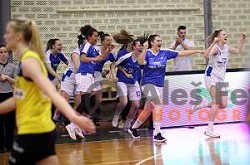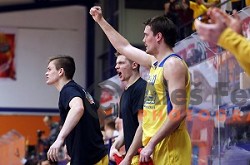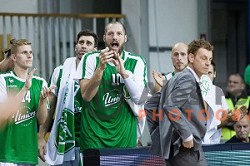Players and staff of Union Olimpija celebrate during basketball match between Zlatorog and Union Olimpija in semi-final of Spar Cup in Domzale, Slovenia on February 18, 2017