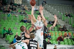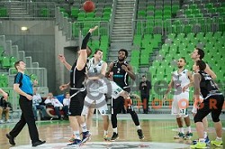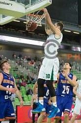 Stevan Milosevic in action during Nova KBM League Basketball match between Olimpija and Rogaska in Ljubljana, Slovenia on April 19, 2017