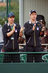 of Slovenia in action during Davis Cup match Slovenia-Israel in 1 Europe / Africa group, played in Portoroz, Slovenia on April 4, 2014