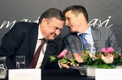 Zoran Jankovic, Andraz Vehovar- candidates for position of President of Slovenia Olympic Committee during STA press conference in Maxi klub, Ljubljana on November 19, 2014.