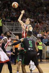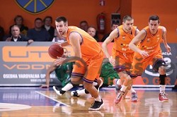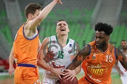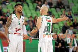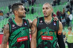 of Petrol Olimpija in action during FIBA Champions League basketball match between Petrol Olimpija and Movistar Estudiantes in Stozice Hall, Ljubljana on Janaury 17, 2018