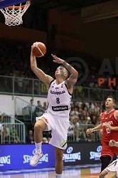 of Slovenia in action during Adecco Cup basketball match between Slovenia and Czech Republic in Tabor Hall, Maribor, Slovenia on August 6, 2017