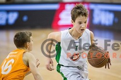 Leon Santelj in action during semi-final of Nova KBM league basketball match between Zlatorog Lasko and Rogaska in Tri Lilije Hall, Lasko, Slovenia on May 10, 2017
