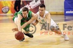 Nikola Jankovic, Leon Santelj in action during Nova KBM League Basketball match between Olimpija and Rogaska in Ljubljana, Slovenia on April 19, 2017