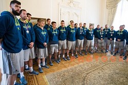 Slovenian basketball team at the presentation of the Golden Order of Slovenia, Presidential palace, Ljubljana, Slovenia