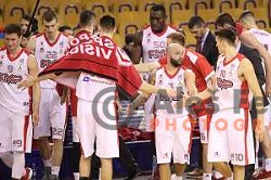 of Petrol Olimpija in action during Nova KBM league basketball match between Petrol Olimpija and Helios Suns in Tivoli Hall, Ljubljana on April 25, 2018