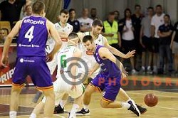 in action during Nova KBM basketball match between Union Olimpija and Krka at Tivoli Hall, Ljubljana, Slovenia, on April 8th, 2017.