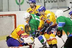 action during Alps League ice-hockey match between SIJ Acroni Jesenice and SZ Olimpija in Podmezakla Hall, Jesenice, Slovenia on January 13, 2018