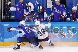 in action during Olympic Ice-hockey tournament match between USA and Slovenia during PyeongChang 2018 Winter Olympic Games, South Korea on February 14, 2018
