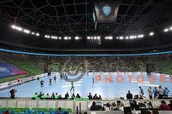 Krim in action during EHF Champions league Women 2022-2023 handball match between Krim Mercator and FTC Rail Cargo Hungaria in Ljubljana, Slovenia on September 23 ,2023