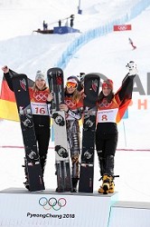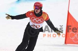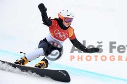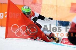 Ester Ledecka (CZE) races in Qualifiaction of Snowboard Men's Parallel Giant Slalom at Phoenix Snow park during PyeongChang 2018 Winter Olympic Games, South Korea on February 24, 2018