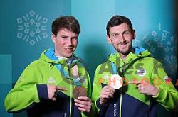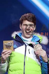 Zan Kosir (SLO) , Olympic bronze medalist of Snowboard Men's Parallel Giant Slalom at PyeongChang 2018 Winter Olympic Games, South Korea on February 24, 2018