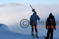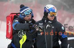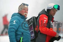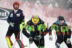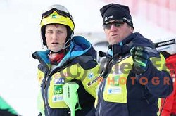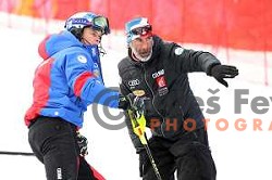 Stefan Hadalin and coach Klemen Bergant at Course inspection before Audi FIS World Cup Slalom for 58. Vitranc Cup in Kranjska Gora, Slovenia on March 10, 2019