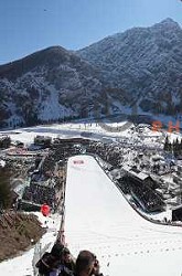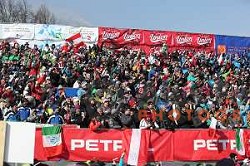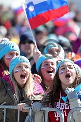 More than 13.000 fans cheering at Ski flying Qualification during the Final of Ski jumping World Cup 2017/2018 in Planica, Slovenia on March 22, 2018