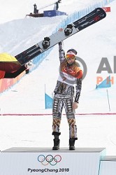 Zan Kosir (SLO) , Olympic bronze medalist of Snowboard Men's Parallel Giant Slalom at Phoenix Snow park during PyeongChang 2018 Winter Olympic Games, South Korea on February 24, 2018