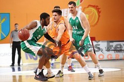 Stevan Milosevic in action during Nova KBM League Basketball match between Olimpija and Rogaska in Ljubljana, Slovenia on April 19, 2017