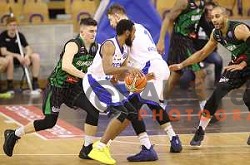 Jure Pelko in action during Nova KBM League Basketball match between Olimpija and Rogaska in Ljubljana, Slovenia on April 19, 2017