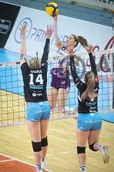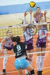 Maja Kosenina and Ela Pintar in action during women volleyball match between Nova KBM Branik and Calcit Volleyball in Lukna, Maribor, Slovenia on December 2, 2019