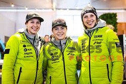 Nika Tomsic, Neja Dvornik and Ana Bucik Jogan at press conference before Audi FIS Ski World Cup Women Giant Slalom and Slalom in Kranjska Gora, Slovenia on January 3, 2025