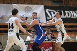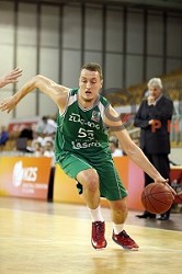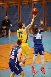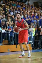 Ziga Jurcek in action during 1.SKL basketball match between Helios Suns and Sencur GGD in Domzale Sports Hall, Slovenia on October 5, 2019