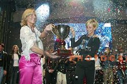 of Krim Eta Neutro Roberts at he party after winning EHF Champions League Women 2002-2003 title in Ljubljana, Slovenia on May 17, 2003