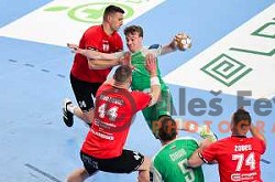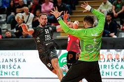 in action during first 1.NLB league semi-final handball match between Celje Pivovarna Lasko and Gorenje Velenje in Celje, Slovenia on May 17, 2025.