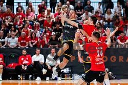 in action during second match of the Final of 1.NLB League 2024/2025 between RK Gorenje Velenje and RD LL Grosist Slovan in Red Hall in Velenje, Slovenia on June 4, 2025