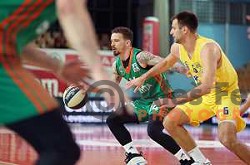 Mirko Djumic, Nejc Brus in action during Alps league ice-hockey match between Acroni Jesenice and SZ Olimpija in Podmezakla Hall, Jesenice, Slovenia on March 2, 2020