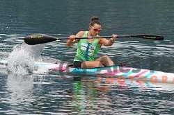 Anja Osterman during kayak K-1 practice session on lake Bohinj, Slovenia on July 31, 2020