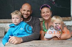 Stjepan Janic and Spela Ponomarenko Janic with their childern during kayak K-1 practice session on lake Bohinj, Slovenia on July 31, 2020