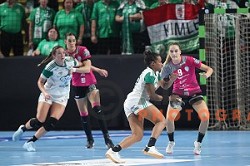 Elizabeth Omoregie in action during EURO Cup Women 2022 Group phase handball match between Slovenia and Norway in Ljubljana, Slovenia on October 10, 2021