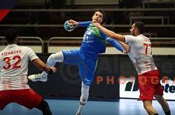 Domen Makuc in action during Euro Handball 2022 Qualifyer handball match between Slovenia and Turkey in Celje on May 2, 2021