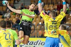in action during semi-final of EHF European Cup m match between Gorenje Velenje and AEK Athens in Velenje, Slovenia on April 24, 2021