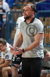 Uros Rapotec, head coach of Koper in action during 1.NLB league handball match between Koper and Celje Pivovarna Lasko in Bonifika Hall, Koper, Slovenia on October 16, 2019