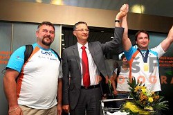 Slovenia Ski Demo team in action.Krvavec Ski resort in fresh snow during Karving magazin ski test. Cerklje, Slovenia 19.3.2008