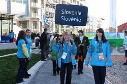Team Slovenia during official ceremony "Raising the flag" in Olympic village at 2010 Winter Olympic games in Vancouver, Canada 9.2.2010