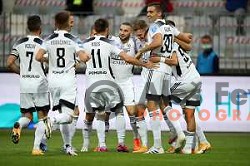 Players of Olimpija celebrate victory in Prva Liga Telekom Slovenije 2019/2020 football match between Domzale and Olimpija in Domzale, Slovenia on June 21 , 2020