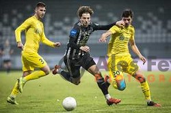 Kai Cipot vs Sven Sostaric Karic in action during Prva liga Telekom Slovenije football match between Mura and Aluminij in Fazanerija, Murska Sobota, Slovenia on December 13, 2020