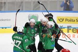 Players of SZ Olimpija, Winners of Alps league 2021 celebrate in Hala Tivoli, Ljubljana, Slovenia on April 24, 2021