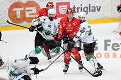 Bled in action during National League ice-hockey match between SZ Olimpija and Bled in Tivoli Hall, Ljubljana, Slovenia on October 8, 2018
