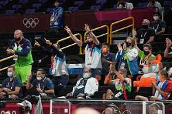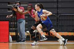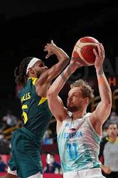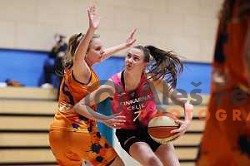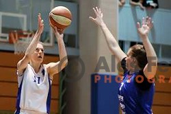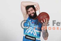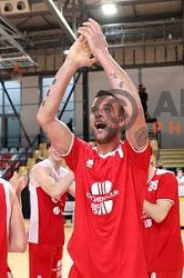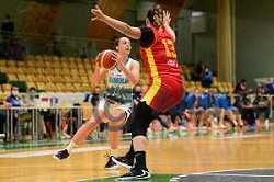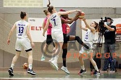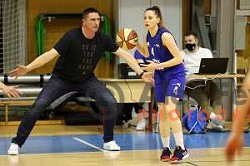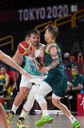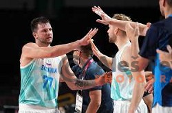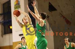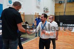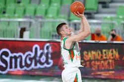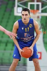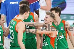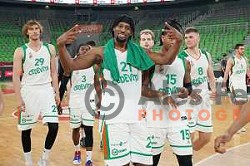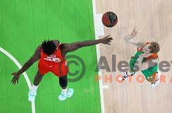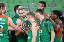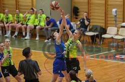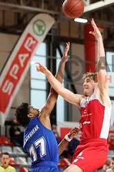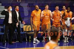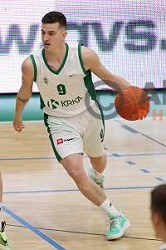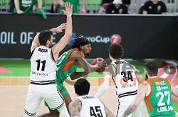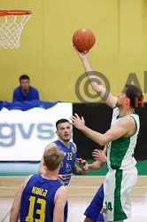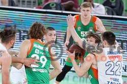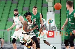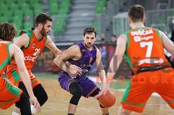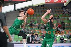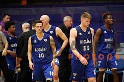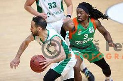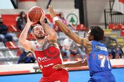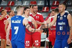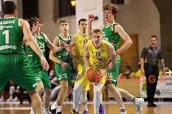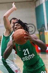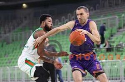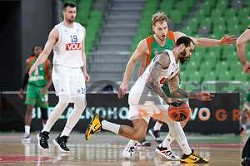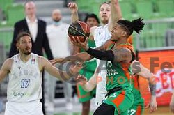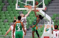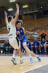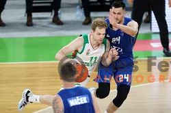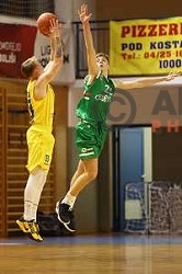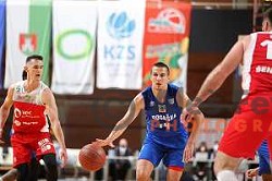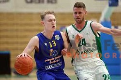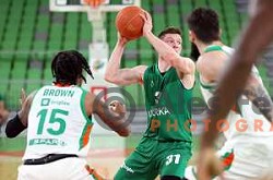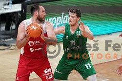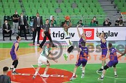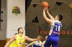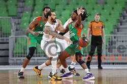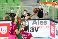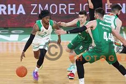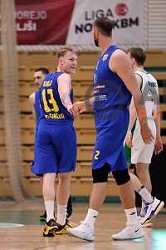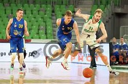 Jure Skific and Jarrod Jones in action during Nova KBM league basketball match between Krka and Cedevita Olimpija in Novo Mesto on March 23, 2021