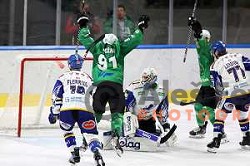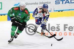 Ziga Pance of SZ Olimpija in action during IceHL match between SZ Olimpija and Black Wings Linz in Ljubljana, Slovenia on October 29, 2021