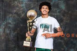 Matic Suholeznik in action during 1.NLB league handball match between Celje Pivovarna Lasko and Gorenje Velenje in Arena Zlatorog, Celje, Slovenia on May 7, 2022