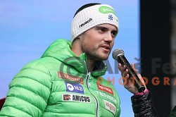 Bostjan Kline at reception for best slovenian winter sportsmen and sportswoman for fans during Q max party at Congress square, Ljubljana, Slovenia on March 22, 2016