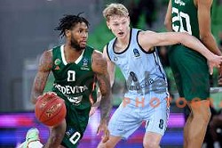 DJ Stewart of Cedevita Olimpija and Jared Grey of Veolia Towers Hamburg in action during BKT EuroCup 2024/2025 basketball match between Cedevita Olimpija and Veolia Towers Hamburg in Ljubljana, Slovenia on November 28, 2024. Photo: Filip Barbalic