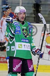 Travis Brigley celebrate victory after ice-hockey match Tilia Olimpija-Liwest Linz in Ebel league, played in Hala Tivoli, Ljubljana 6.12.2009