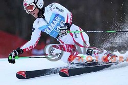 Katharina Truppe (AUT) skiing in the first run of 53. Golden Fox- Zlata Lisica Audi FIS Ski World Cup Slalom in Maribor, Slovenia on January 8, 2017