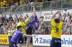 Nosan Mitja, Spende Aleksander in action during half final handball game, Maribor - Velenje Gorenje, played in Tabor Hall on 13.5.2015, Maribor